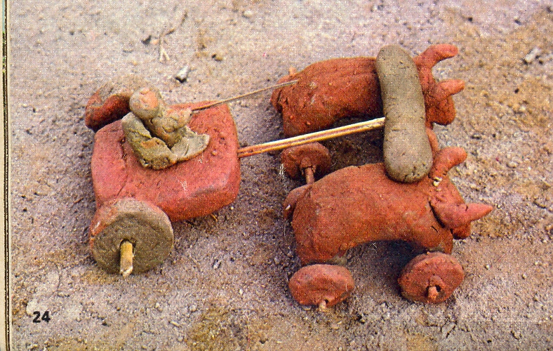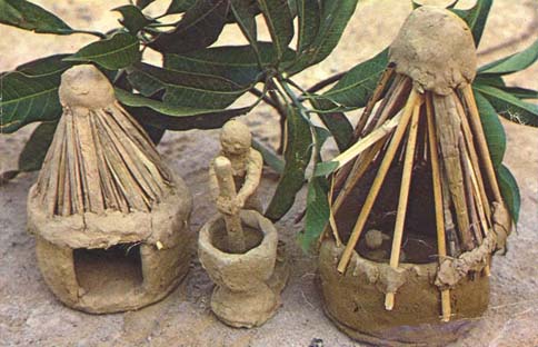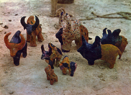 zébus une fois secs sont recouverts de terre ocre ou rouge, puis décorés