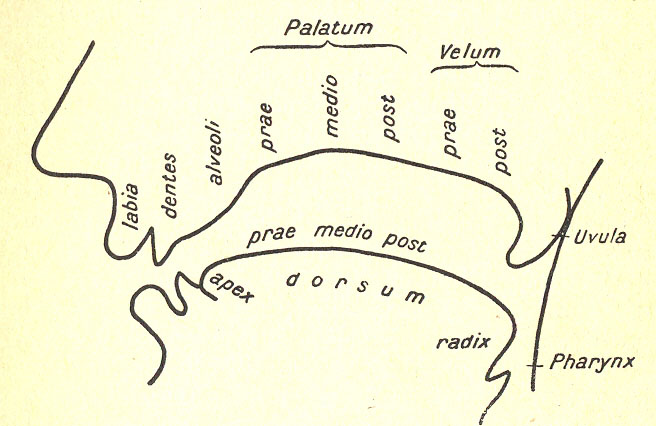 labiales, dentales, alvéolaires, palatales, vélaires,