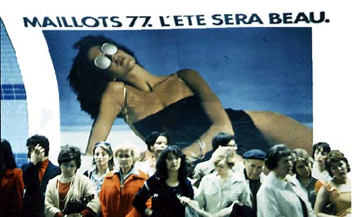 voyageurs et celle imaginaire, géante, du mannequin de la publicité. La confusion